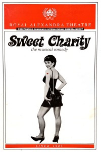 Sweet Charity starred Donna McKechnie. It was the final production directed by the brilliant Bob Fosse. It was headed to Broadway and played Toronto from July 6 to August 29, 1987 and then went to Washington. On the opening night there, on the way to the theatre with his ex-wife Gwen Verdon, Fosse suffered a hard attack and died on the street.